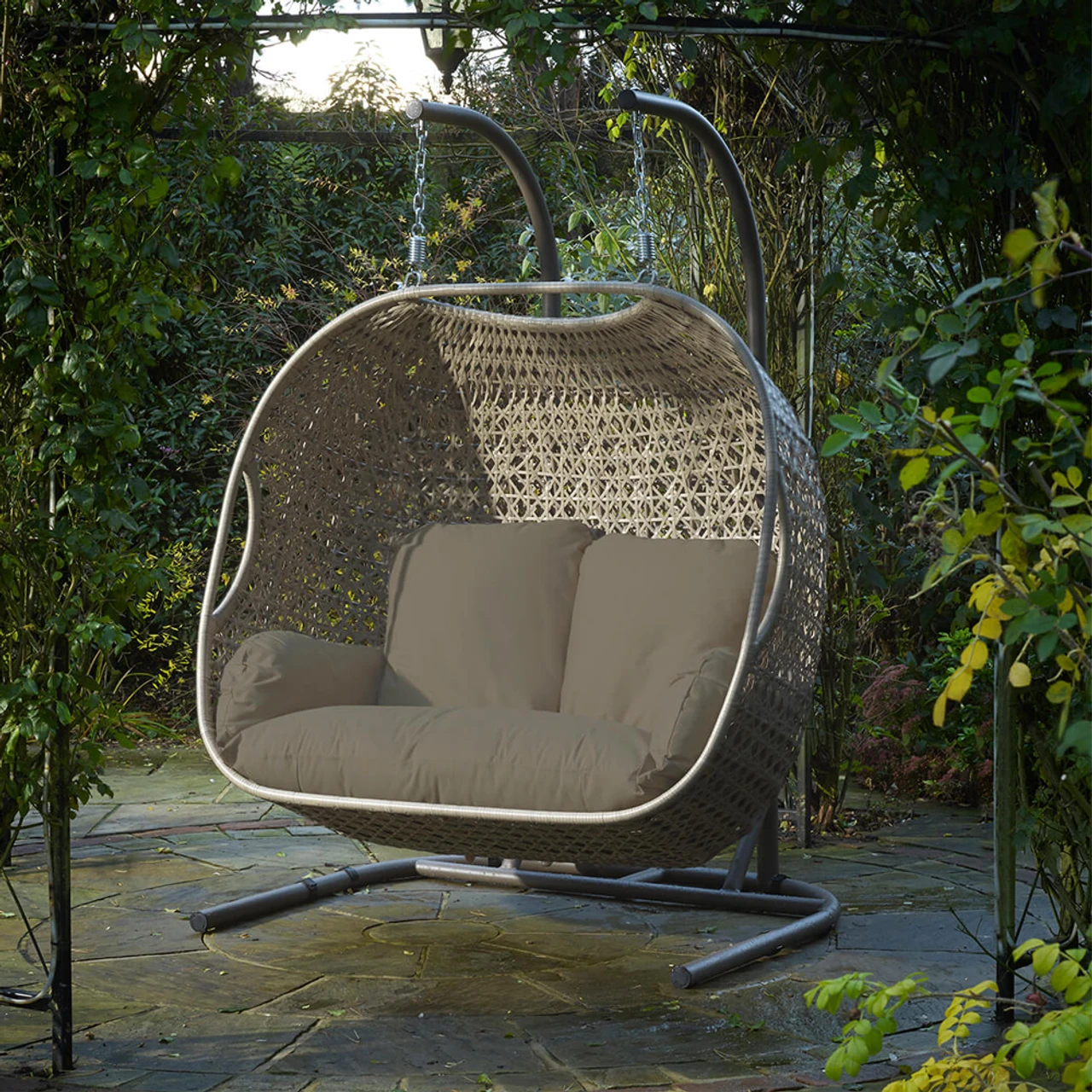 - x1 Blenheim Double Hanging Cocoon inc. Season-Proof Eco Cushions in Taupe