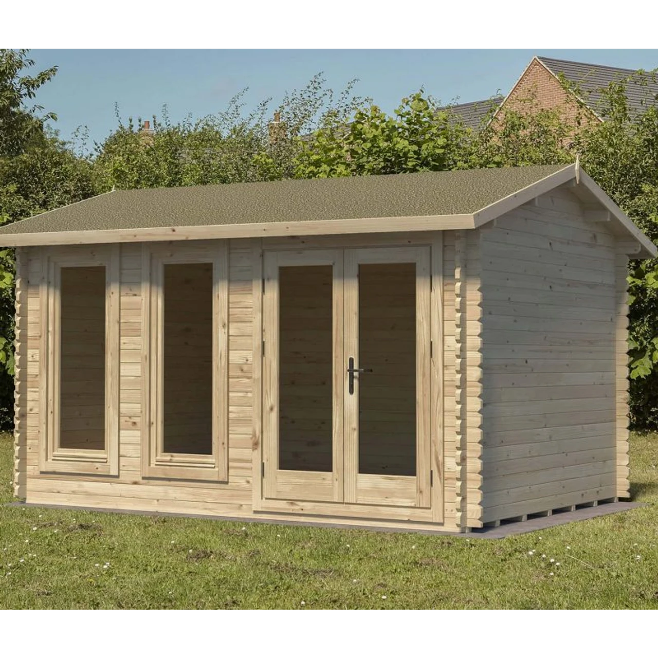 - Apex 4m x 3m log cabin with internal floor area of 110 square feet