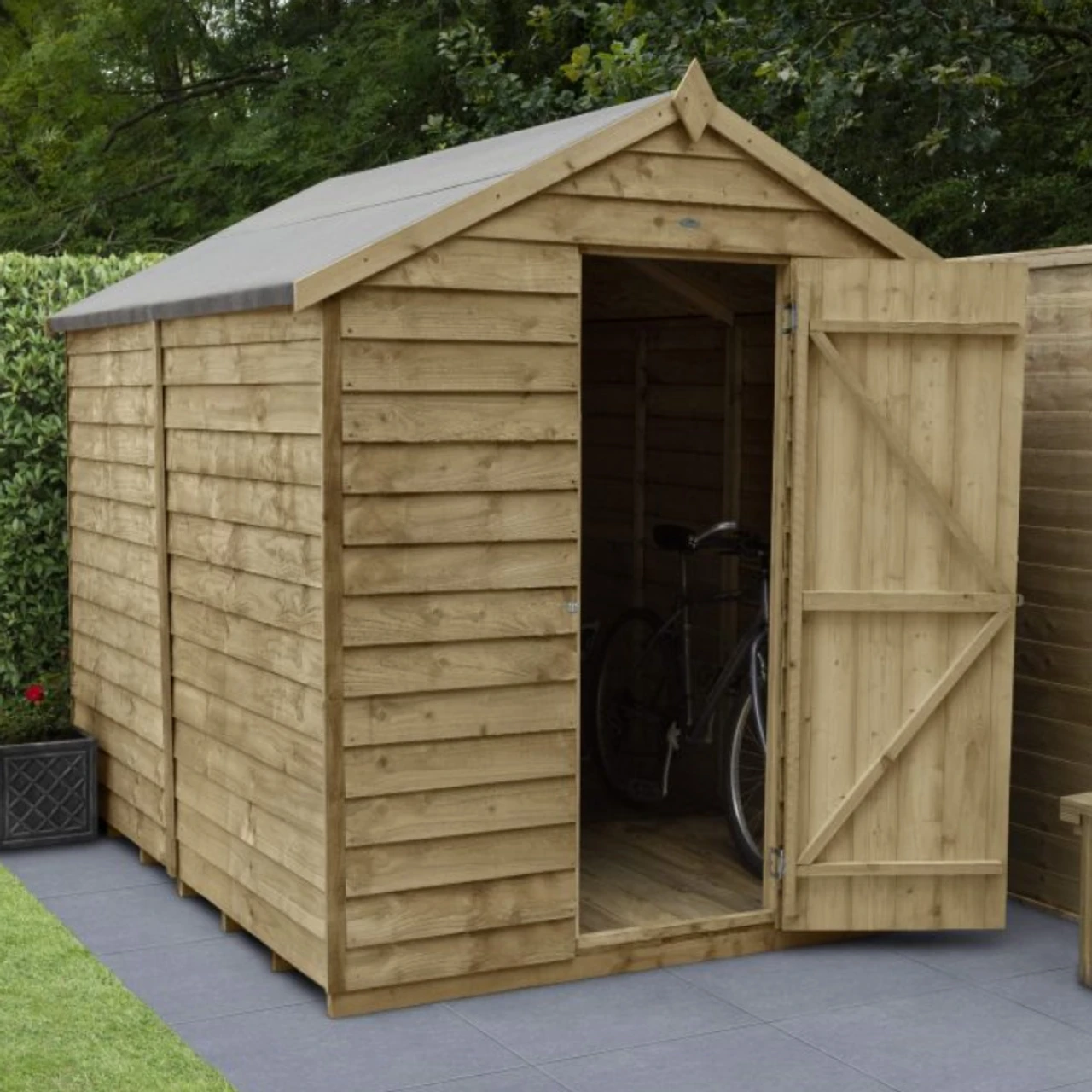 - An attractive garden shed, made with traditional straight cut overlap timber boards