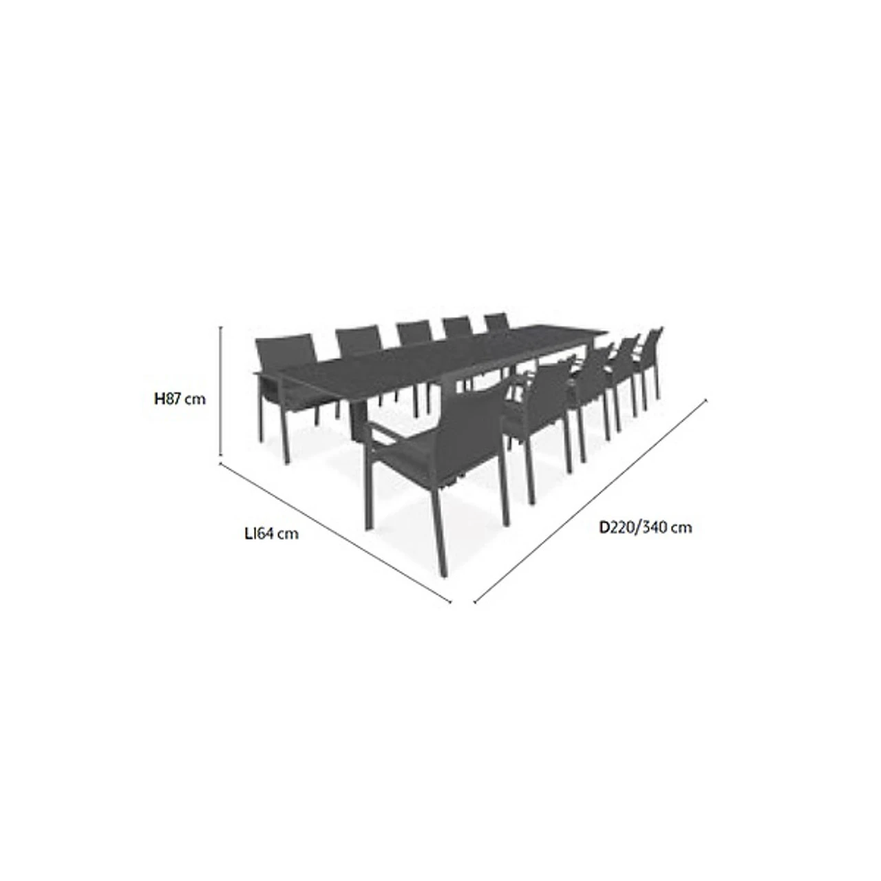 A very modern design The LIFE Anabel Extendable Dining Table with 10 Life Sense stackable armchairs will be the perfect place to sit and entertain family and friends. The ultimate in modern garden furniture design. Features a simple extending operation. Each section draws open, and the middle section smoothly moves up to position.